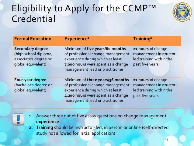 It was developed based on ACMPs industry-leading Standard for Change Management Standard that defines best practices in change management. The CCMP is a way for professionals to demonstrate.