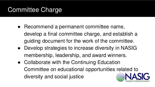 Recognizing understanding and responding to the experiences of diversity and discrimination. The Diversity Committee is a Standing Committee. So youve been asked to take the lead on an internal Diversity Committee.